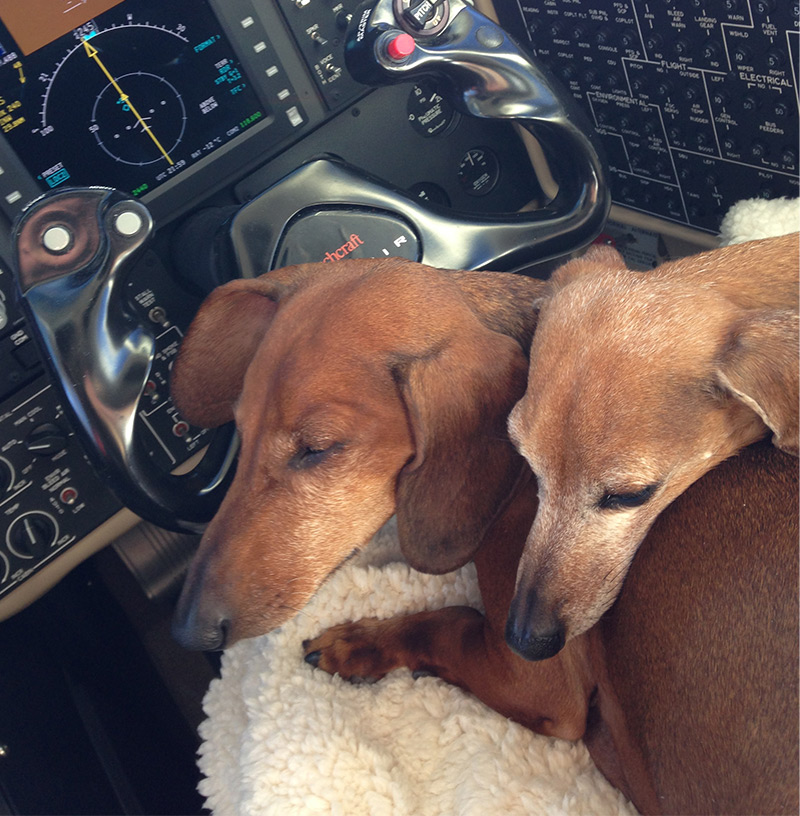 Brandy and Sophie tried out the right seat for a moment on their owners’ King Air 250. Today when they travel, it’s on a Citation® CJ4®.