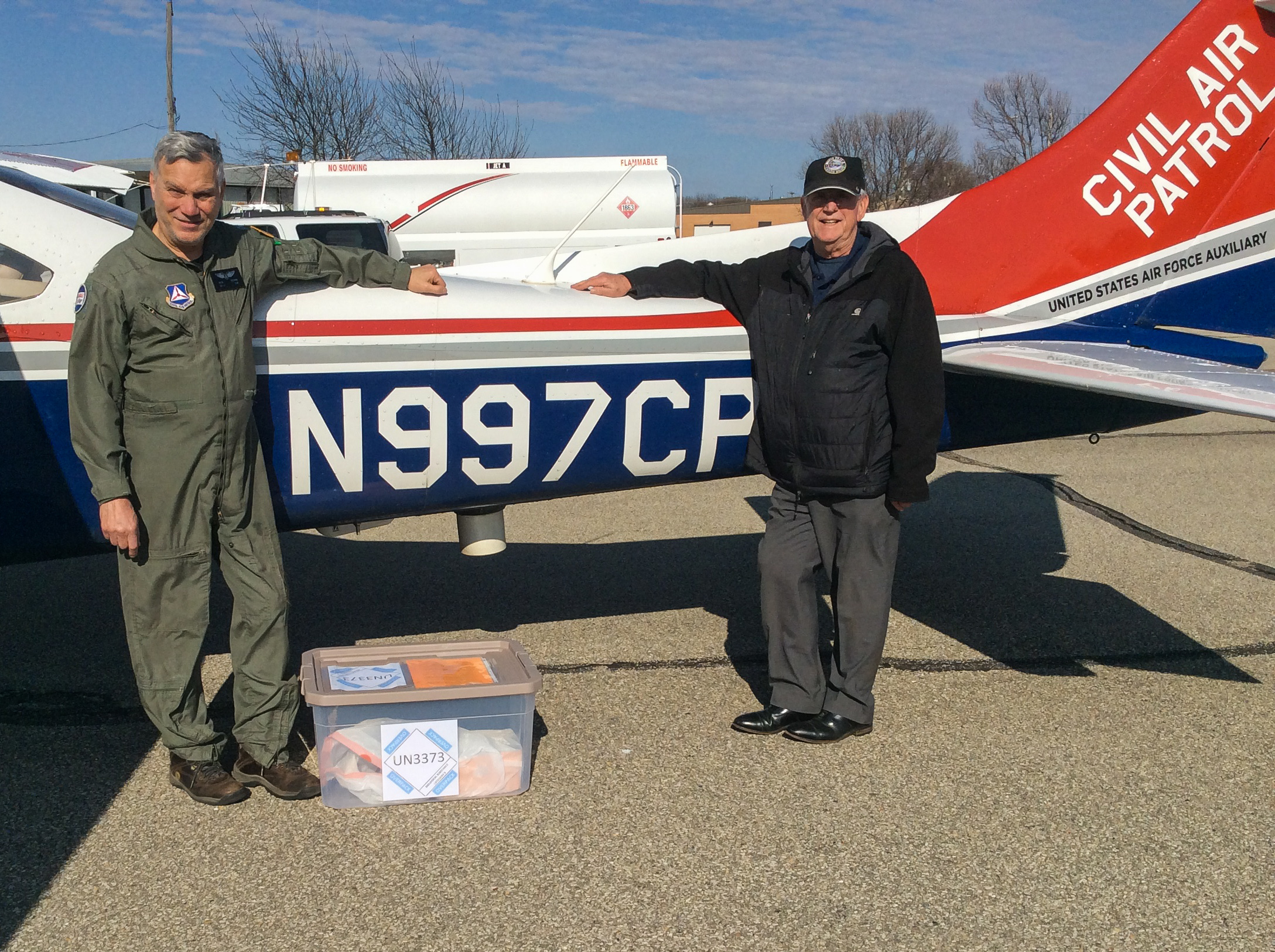 Sometimes, the volunteers are up against the clock. To be effective, the specimens must arrive at the lab within 48 hours to test for COVID-19 because they are only viable for 72 hours. Lt. Col. Taylor said one specimen got stuck in Nebraska and his squadron flew it’s Cessna 182 piston aircraft to retrieve it and get it to the Topeka lab in time.